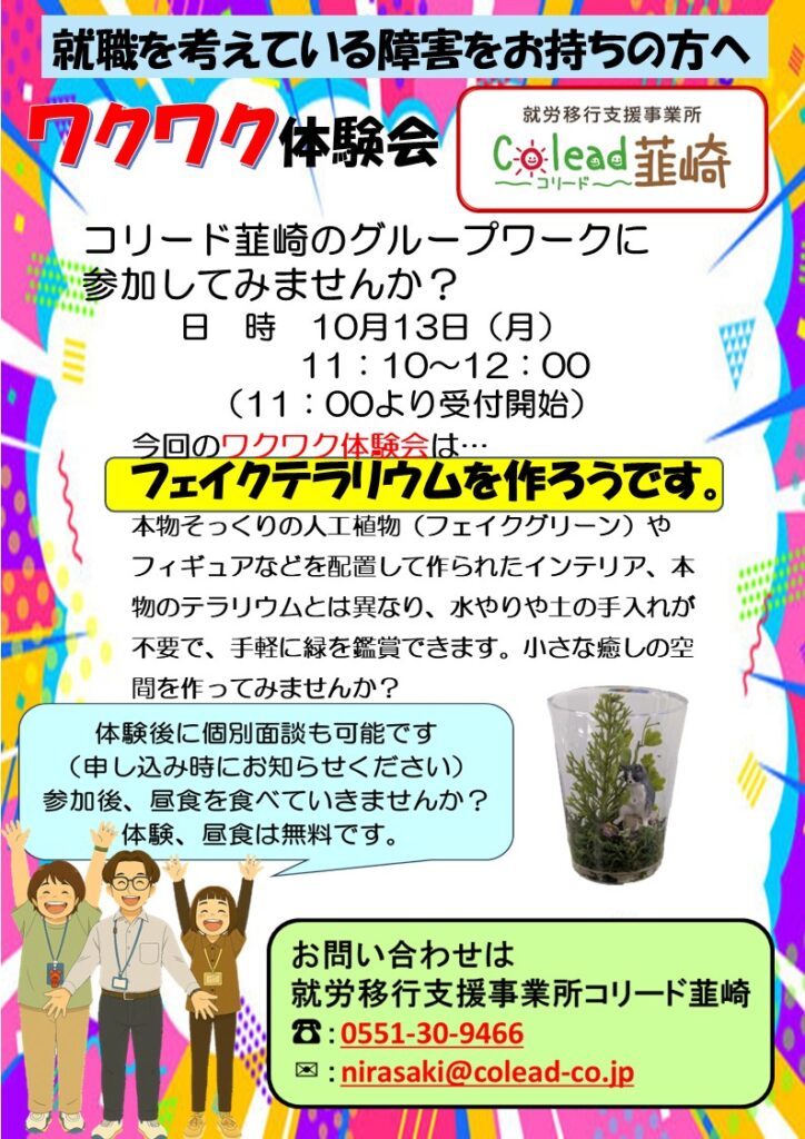 コリード韮崎 10月ワクワク体験会開催のお知らせ!2025年9月30日