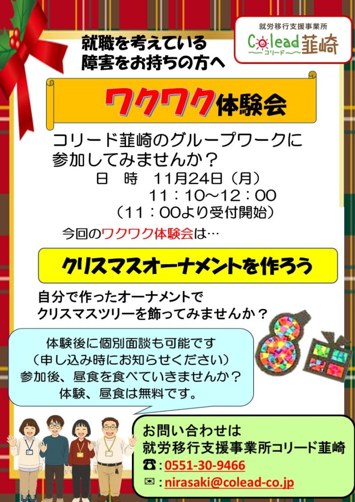 コリード韮崎 11月ワクワク体験会開催のお知らせ!2025年11月1日