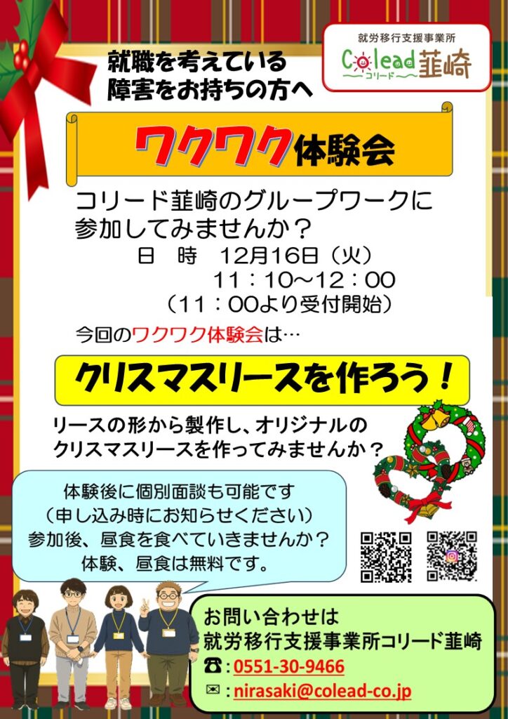 12月ワクワク体験会開催のお知らせ!2025年11月28日