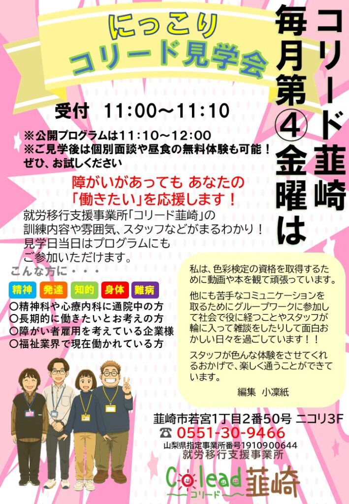 ✉:nirasaki@colead-co.jp(電話が苦手な方でも大丈夫!メールでお気軽にお問い合わせください!)