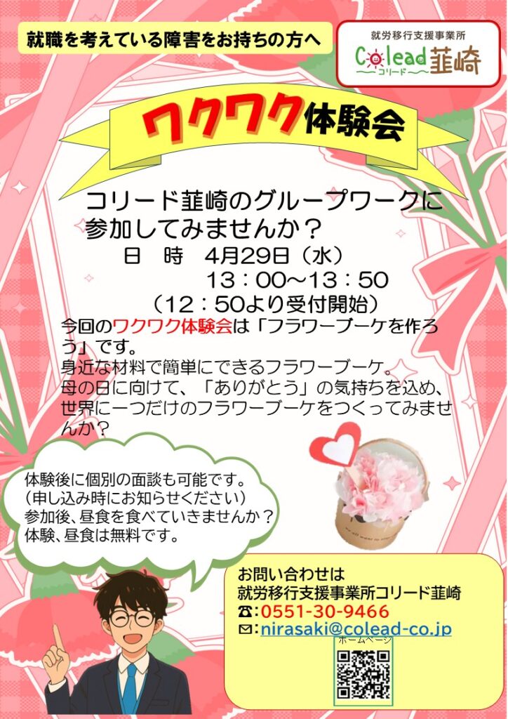 4月ワクワク体験会開催のお知らせ!2026年3月12日