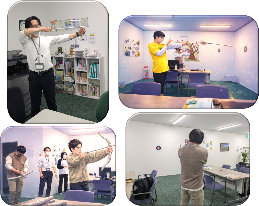 身近な素材を活かしどんな弓矢が出来たでしょうか。